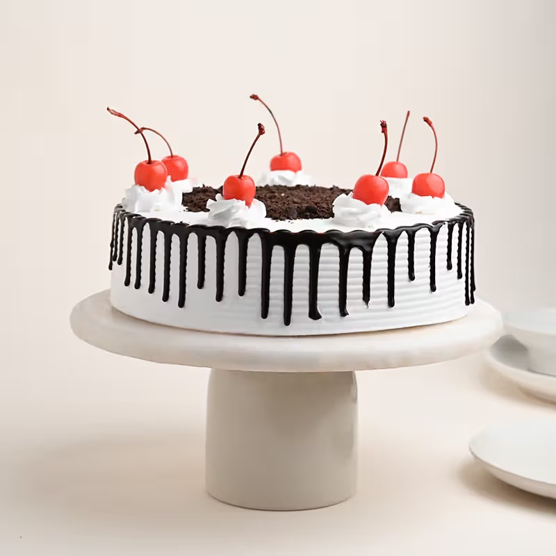 Delight in our Pure Veg Black Forest Cake, a perfect blend of rich flavor and eye catching design. Filled with creamy vanilla frosting, it’s topped with fluffy whipped cream, juicy cherries, and decadent chocolate shavings at the center. Drizzled with smooth chocolate sauce, its moist, melt in your mouth texture makes it a true indulgence. Ideal for birthdays, anniversaries, or any celebration, this cake is sure to impress and create unforgettable moments.