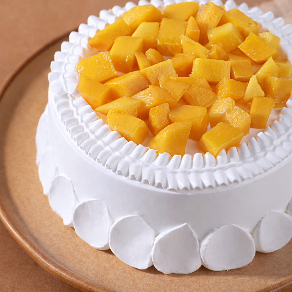 Indulge in the freshness of this pure veg mango cake, beautifully crafted with smooth white whipped cream and topped generously with juicy, hand-cut mango cubes. The soft, moist sponge layers are infused with rich mango flavor, offering a perfect balance of sweetness and creaminess in every bite. Finished with elegant piping and a clean, minimal design, this cake is perfect for summer celebrations, birthdays, and special occasions. A delightful treat for mango lovers that brings both taste and visual charm to your table.