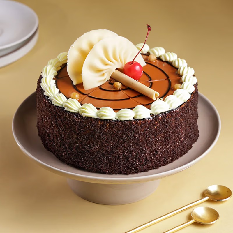 Indulge in the heavenly taste of our Crunch Butterscotch Cake Pure Veg a perfect blend of creamy sweetness and rich crunch. Adorned with a glossy butterscotch glaze, whipped cream swirls, cherry, and chocolate accents, this cake delights both the eyes and the palate. Wrapped in a chocolate crumb layer, every bite offers smooth cream and satisfying texture. Ideal for birthdays, celebrations, or any special moment filled with sweetness.