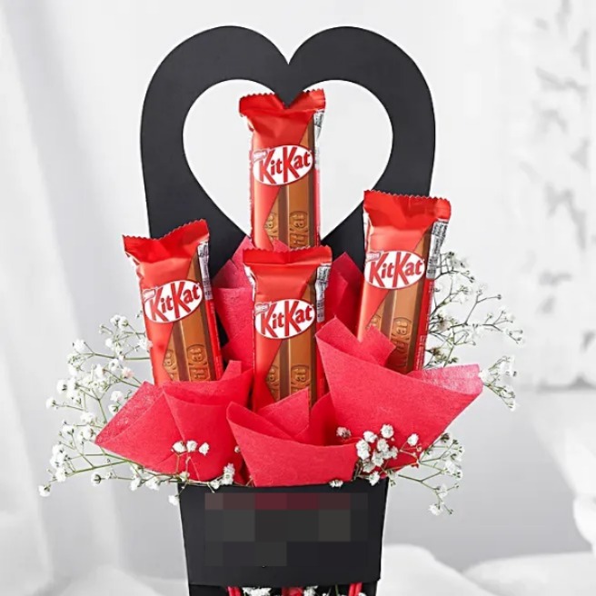 The sweetness of chocolates arranged in a bouquet style will put a magical smile on your beloveds face. The splashes of gypso make this chocolatey bouquet look enchanting and add a floral touch of delight.
