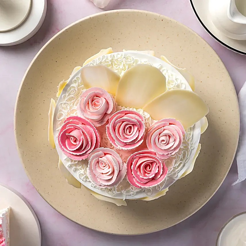Experience pure elegance with our Pure Veg White Forest Cake, beautifully decorated with delicate pink cream roses. This creamy, melt-in-the-mouth delight brings together light vanilla sponge, silky cream, and a luxurious white chocolate finish. Perfect for birthdays, anniversaries, and special celebrations, this cake adds charm and sweetness to every moment with its graceful design and heavenly taste.