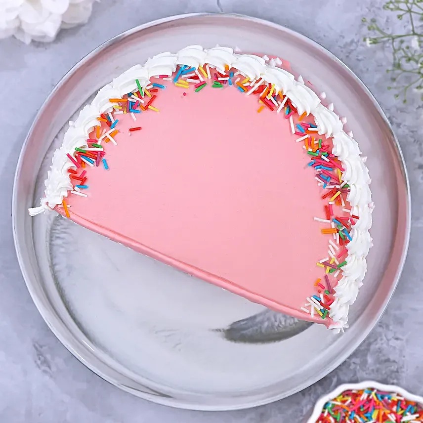 Indulge in the pure delight of our half cake, a creamy vanilla sensation that promises to transport, to a world of sweetness. This cream cake, shaped uniquely as a half cake, is a gift of pure joy. The richness of vanilla combined with the cakes visual charm makes it the perfect gift for anyone with an appreciation for both flavour and aesthetics, making every moment of celebration truly special.