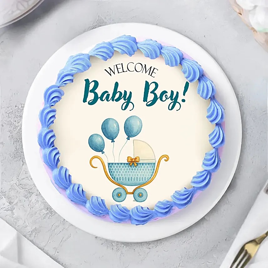 Celebrate your special moment with this pure veg Chocolate Truffle Photo Print Cake, crafted to perfection for baby arrivals and joyful announcements. This rich, indulgent chocolate truffle cake is layered with smooth ganache and topped with an adorable edible photo print featuring a “Welcome Baby Boy” theme. Decorated with pastel blue and lavender frosting, it adds a charming touch to any celebration. Perfect for baby showers, naming ceremonies, or welcoming the little one home, this delicious cake blends delightful design with irresistible chocolate flavor, making your occasion truly memorable.