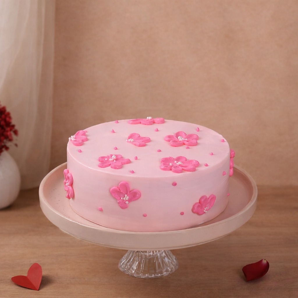 This elegant pure veg Chocolate cake and pink roses combo is a perfect expression of love and celebration. The soft pastel pink cake is beautifully handcrafted with delicate floral detailing, made using 100% vegetarian ingredients for a guilt-free indulgence. Paired with a luxurious bunch of fresh pink roses wrapped in soft blush paper, it creates a charming and graceful presentation. Ideal for birthdays, anniversaries, proposals, or romantic surprises, this combo blends sweetness and elegance to make every moment truly special and unforgettable.