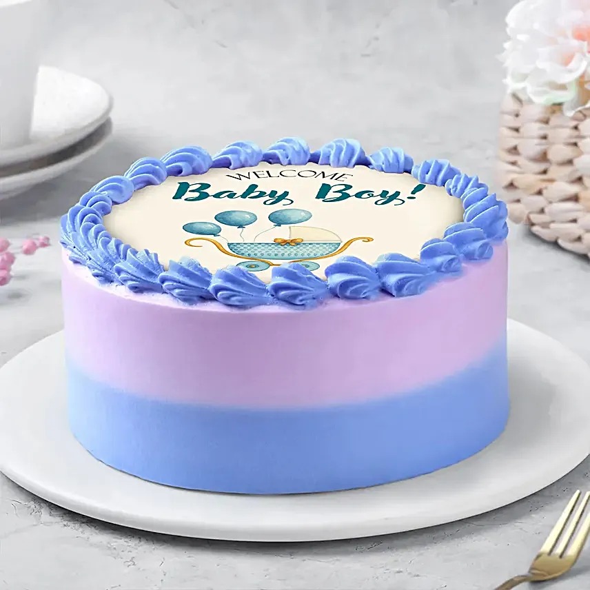 Celebrate your special moment with this pure veg Chocolate Truffle Photo Print Cake, crafted to perfection for baby arrivals and joyful announcements. This rich, indulgent chocolate truffle cake is layered with smooth ganache and topped with an adorable edible photo print featuring a “Welcome Baby Boy” theme. Decorated with pastel blue and lavender frosting, it adds a charming touch to any celebration. Perfect for baby showers, naming ceremonies, or welcoming the little one home, this delicious cake blends delightful design with irresistible chocolate flavor, making your occasion truly memorable.